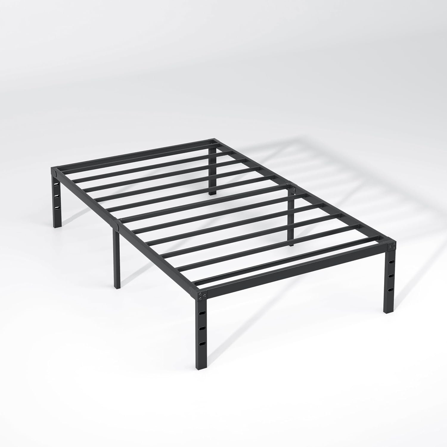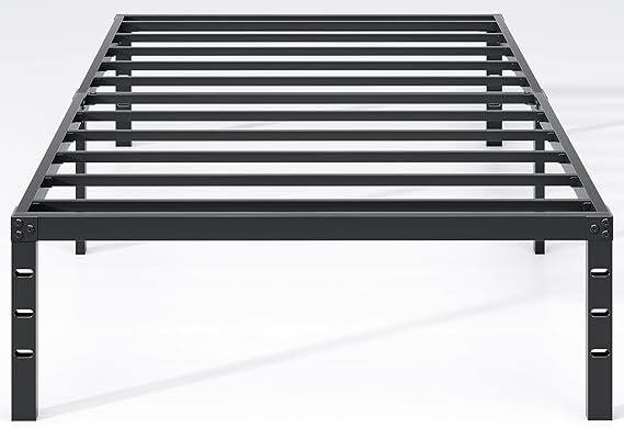 The NEW JETO Twin Metal Bed Frame offers a sleek, minimalist design with a durable metal construction, eliminating the need for a box spring. Its 14-inch height provides ample under-bed storage space, while the sturdy slat support system ensures a noise-free and stable foundation for your mattress. Ideal for bedrooms, dorms, or guest rooms, this bed frame combines functionality with modern aesthetics.